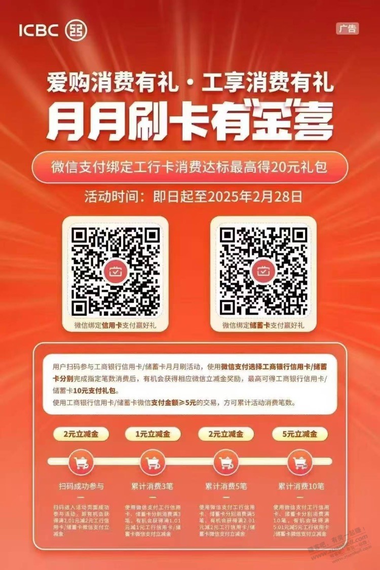 工商银行新一期的网点打卡有礼领微信立减金的活动,所谓的打卡就相当于是一个浏览任务,完成后就可以领取微信立减金,每个地区都有自己地区的活动,所以每个地区的奖品不同,为1~9元微信立减金和线下礼品,活动只能领取自己所在地区的微信立减金活动时间:...