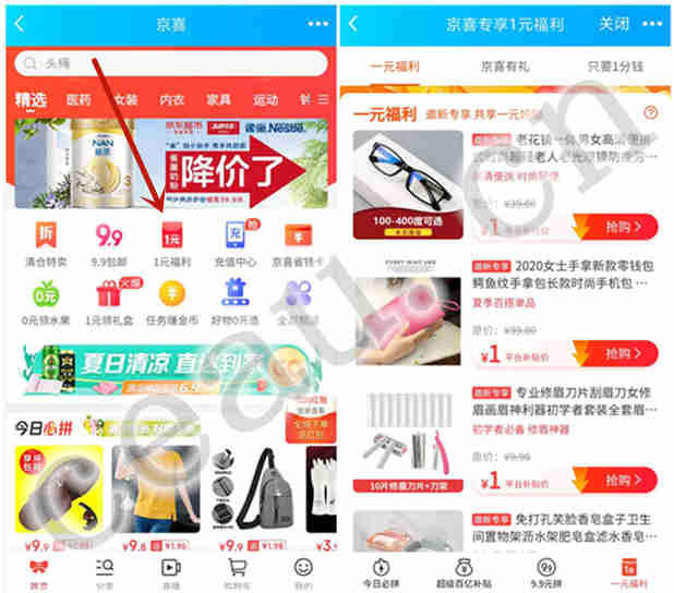 自行在QQ点击左上角的图像,进入【我的QQ钱包】找到【京喜购物进入】,再点击【一元福利进入】,选择自己喜欢的拼团,大部-分都是两人成团,挺容易的