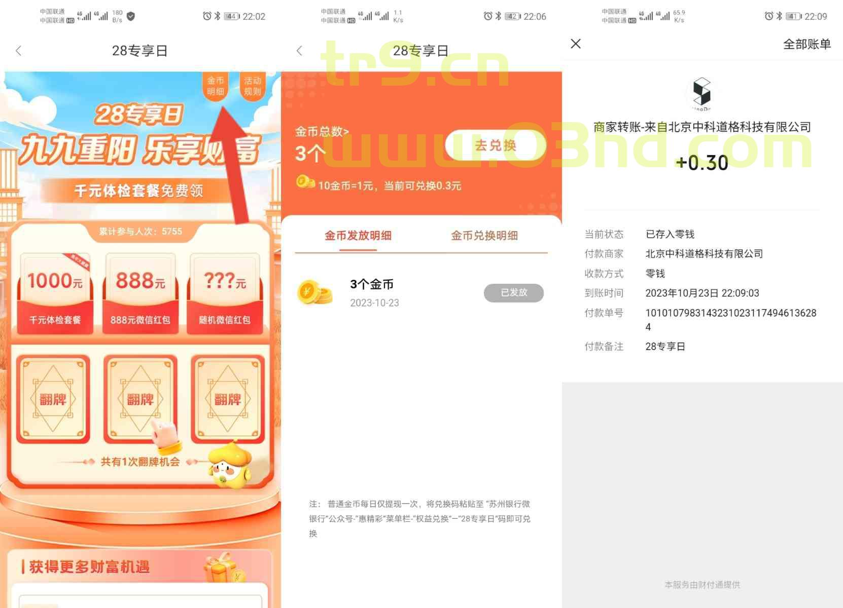 苏州银行的28专享日活动,可以自行注册电子账户参加,参与活动进入需要通过做任务获得抽奖机会,有一个浏览任务可获得一次抽奖机会,抽奖都是抽中金币,每人金币可兑换0.1元,亲测抽中三个金币兑换0.3元,需要使用券码在“苏州银行微银行”微信公众号兑换领取,秒到