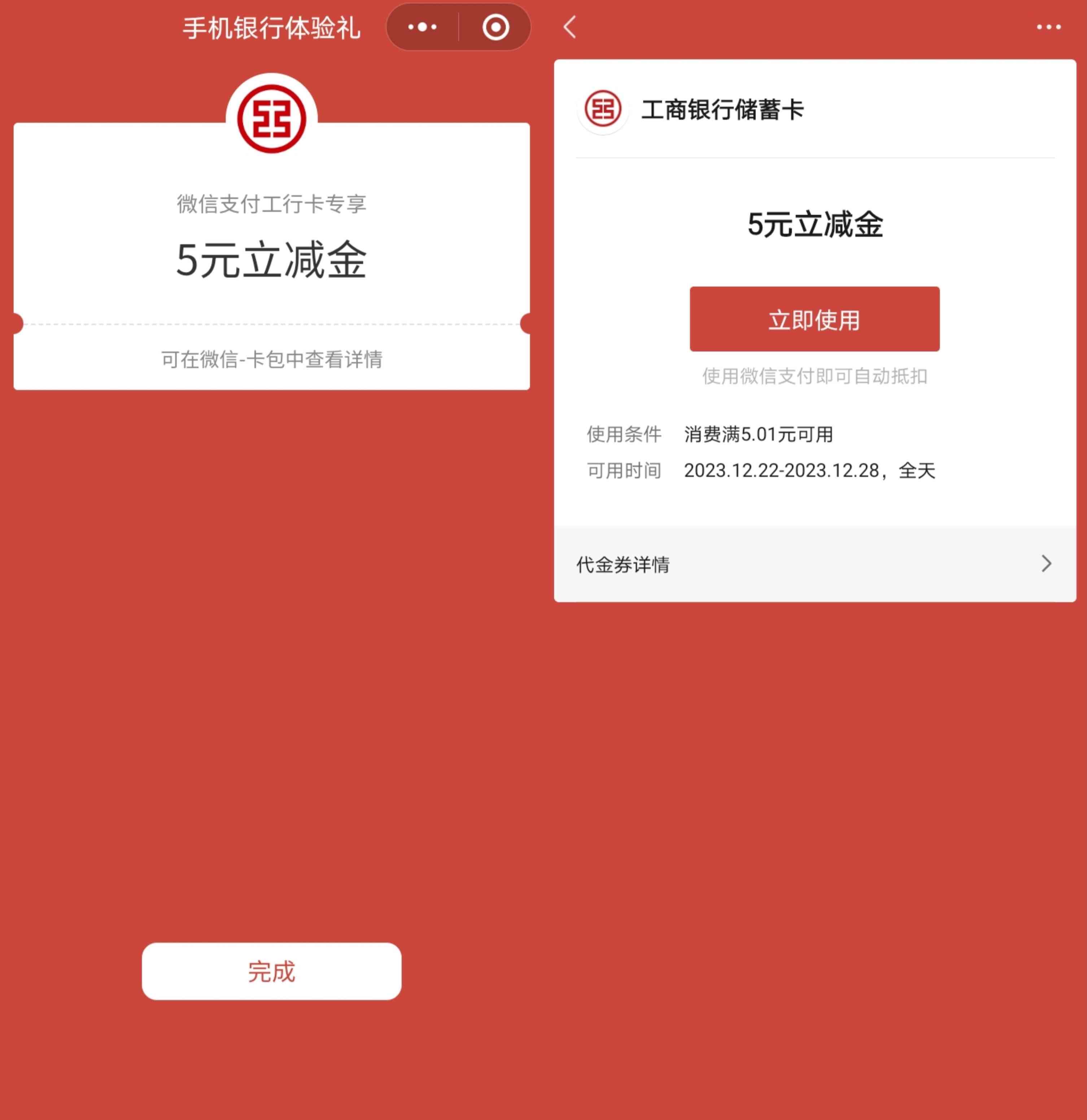 扫描第一个二维码进入跳转到工商银行APP存钱,然后扫描第二个二维码跳转到工商银行再跳转到微信领取微信立减金,然后在工商银行APP首页存款里可以取出刚才的存款